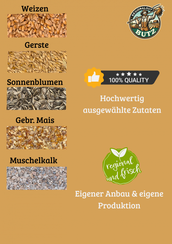 • Vielseitige Mischung: Mit gebrochenem Mais, Weizen, Gerste, Sonnenblumenkernen, Hirse, Muschelkalk