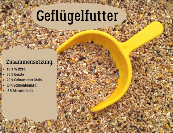 Vielseitige Mischung: Mit gebrochenem Mais, Weizen, Gerste, Sonnenblumenkernen, Hirse, Muschelkalk