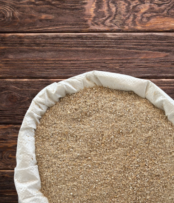 - Aus eigener Herstellung, in geschroteter Form (mehlig)